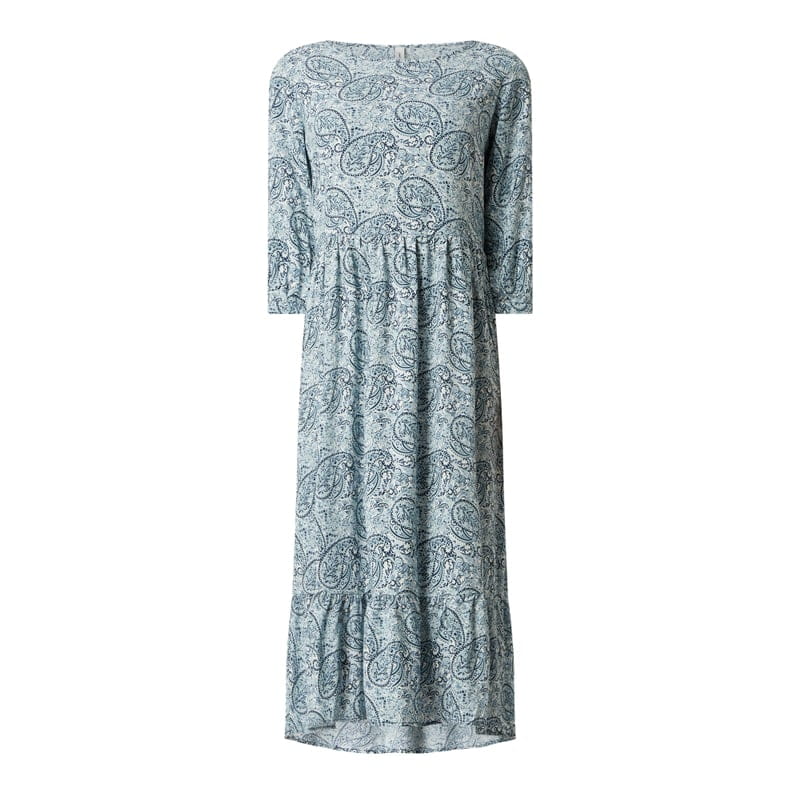 Sukienka damska soyaconcept, Czysta wiskoza , Krój rozkloszowany , Wzór paisley , Okrągły dekolt , Rękaw o dł. 3/4 z zakończeniem zapinanym na guzik , Dół obszyty falbaną , Długość tyłu w rozmiarze S: 119 cm