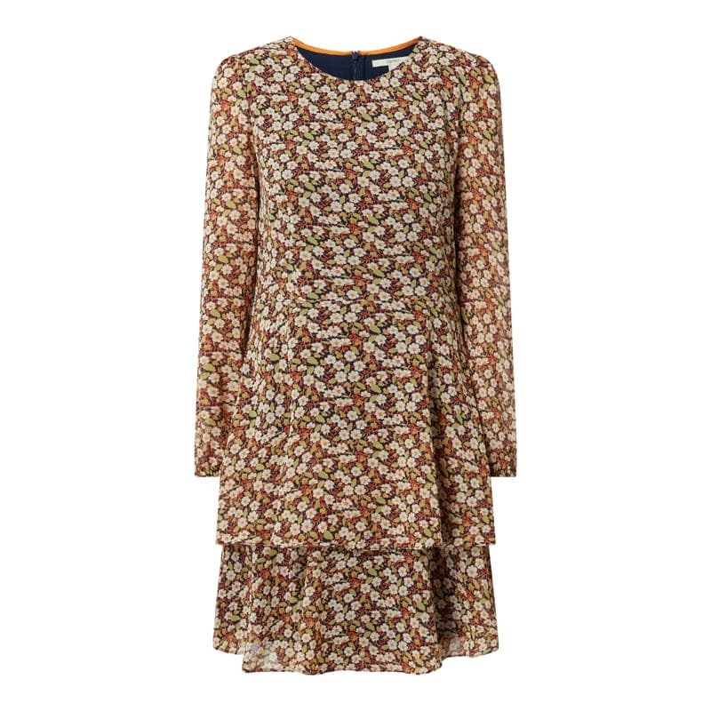 Sukienka damska Esprit, Lekki materiał , Taliowany krój, Kwiatowy wzór , Stopniowanie, Okrągły dekolt, Długie rękawy , Wszyty zamek błyskawiczny z tyłu, Długość tyłu w rozmiarze 36: 92 cm, Długość rękawa w rozmiarze 36: 61 cm