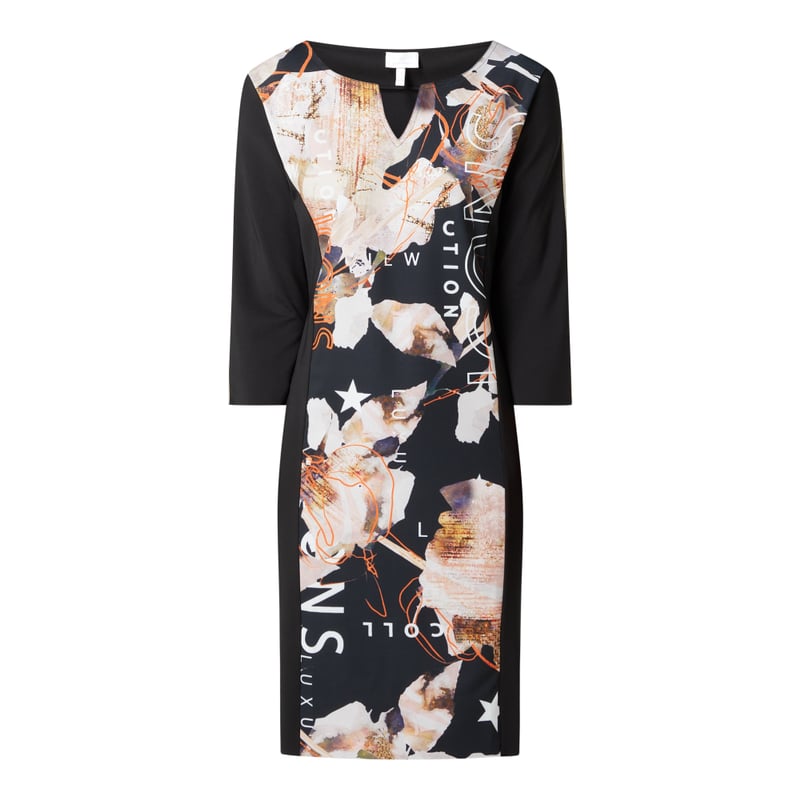 Sukienka damska SPORTALM , Elastyczny materiał , Dopasowany krój , Okrągły dekolt z wycięciem , Wstawka w kontrastowym kolorze z wzorem na całej powierzchni , Rękawy o dł. 3/4 z rozcięciem , Pasek z logo , Niewykończone brzegi rękawów i dołu, Długość tyłu w rozmiarze 36: 96 cm