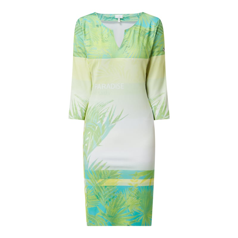 Sukienka damska SPORTALM, Mieszanka materiałów z dodatkiem streczu, Taliowany krój, Wzór na całej powierzchni, Kołnierz z lamówką, Rękaw o dł. 3/4, Brzegi bez wykończenia , Długość tyłu w rozmiarze 36: 95 cm
