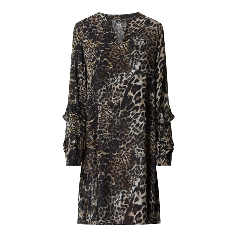 Sukienka damska Princess Goes Hollywood, Czysta wiskoza , Krój rozkloszowany , Zwierzęcy nadruk , Stójka , Wiązane wycięcie w kształcie łezki , Długie rękawy z falbanami , Nieprzejrzysta halka , Długość tyłu w rozmiarze 36: 96 cm, Długość rękawa w rozmiarze 36: 60 cm