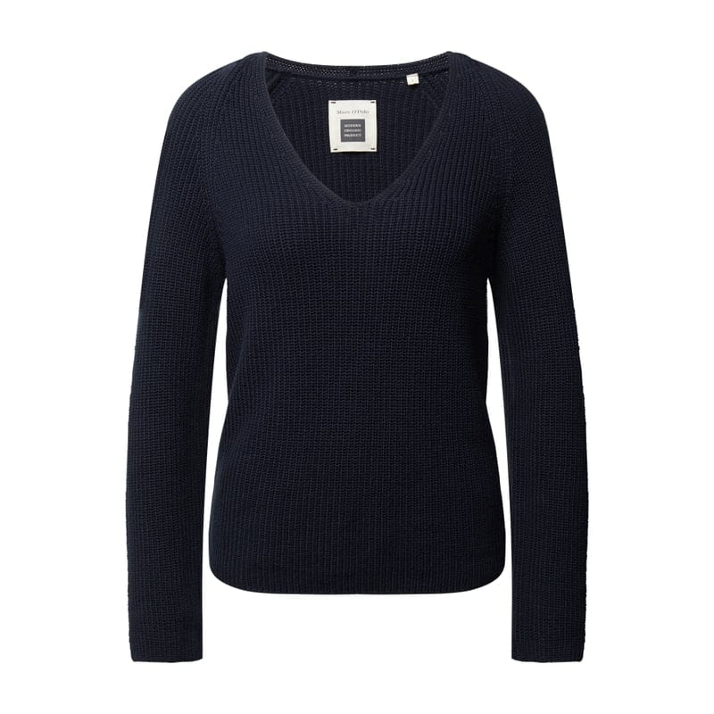 Sweter damski MARC O’POLO, Czysta bawełna ekologiczna , Prosty krój , Prążkowana faktura , Dekolt w serek , Raglanowe rękawy , Aplikacja z logo , Długość tyłu w rozmiarze S: 61 cm