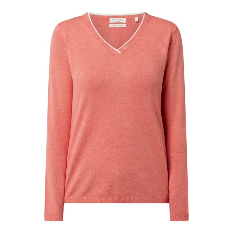 Sweter damski Christian Berg Women, Czysta bawełna ekologiczna , Taliowany krój, Gładka dzianina, Dekolt w serek, Długość tyłu w rozmiarze 36: 57 cm, Długość rękawa w rozmiarze 36: 58 cm