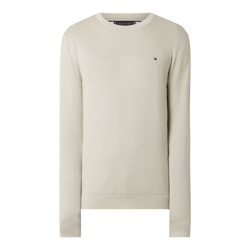 Sweter męski Tommy Hilfiger, Czysta bawełna ekologiczna , Prosty krój , Drobny wzór, Okrągły dekolt , Wyhaftowane logo na wysokości piersi , Prążkowane ściągacze na rękawach i na dole , Długość tyłu w rozmiarze M: 67,5 cm , Długość rękawa w rozmiarze M: 71 cm
