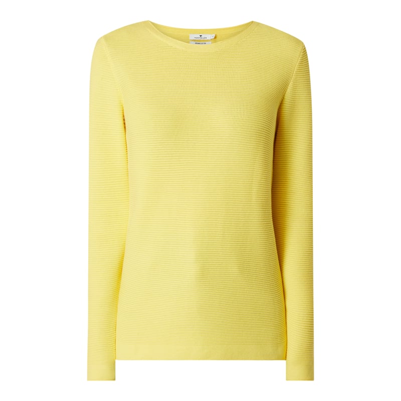 Sweter damski TOM TAILOR, Czysta bawełna ekologiczna , Prosty krój , Prążkowana faktura , Okrągły dekolt , Długość tyłu w rozmiarze S: 63,5 cm , Długość rękawa w rozmiarze S: 61 cm