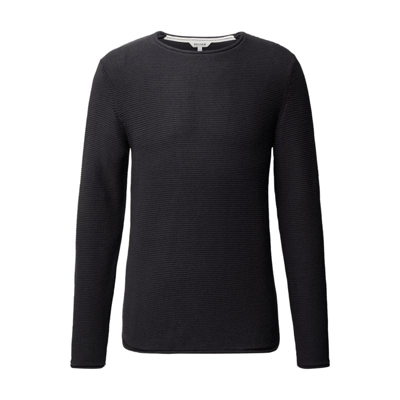 Sweter męski REVIEW, Czysta bawełna , Prosty krój , Oczka z fakturą, Okrągły dekolt , Zrolowane brzegi, Długość tyłu w rozmiarze M: 67 cm , Długość rękawa w rozmiarze M: 72 cm