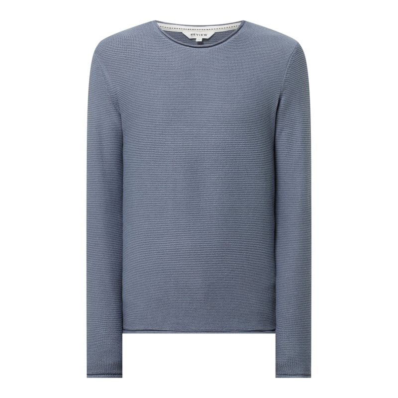 Sweter męski REVIEW, Czysta bawełna , Prosty krój , Oczka z fakturą, Okrągły dekolt , Zrolowane brzegi, Długość tyłu w rozmiarze M: 67 cm , Długość rękawa w rozmiarze M: 72 cm