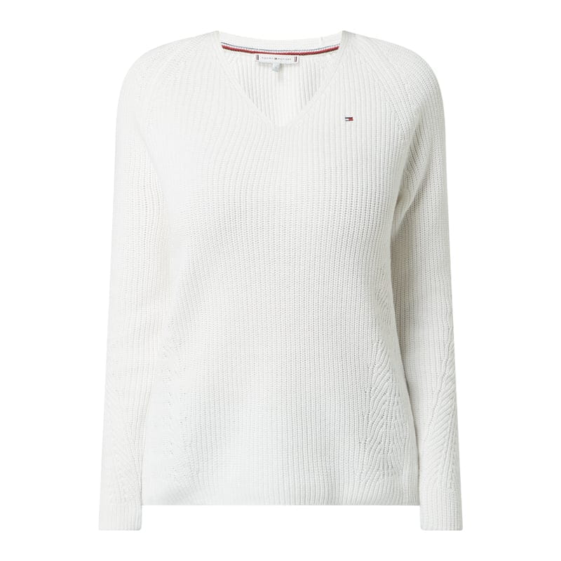 Sweter damski Tommy Hilfiger, Czysta bawełna, Wąski krój, Prążkowana faktura , Dekolt w serek, Raglanowe rękawy, Logo, Długość tyłu w rozmiarze S: 59 cm