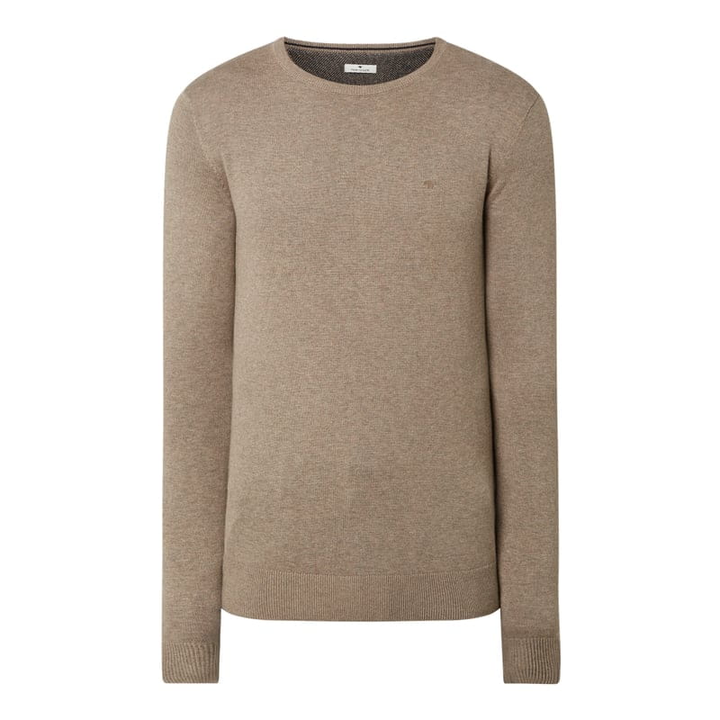 Sweter męski TOM TAILOR, Czysta bawełna, Prosty krój, Okrągły dekolt, Prążkowane wykończenia, Logo, Długość tyłu w rozmiarze M: 66 cm, Długość rękawa w rozmiarze M: 67 cm