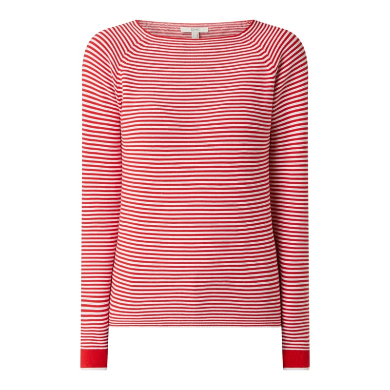 Sweter damski Esprit , Bawełna z dodatkiem materiału ekologicznego, Luźny krój, Wzór w paski , Okrągły dekolt , Raglanowe rękawy , Długość tyłu w rozmiarze S: 54 cm