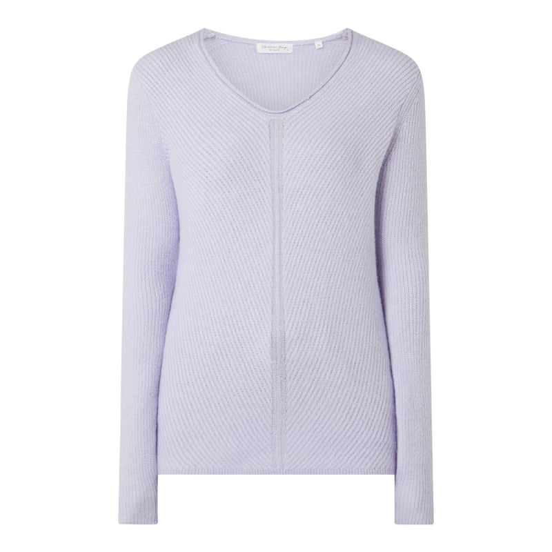 Sweter damski Christian Berg Women, Mieszanka materiałów z dodatkiem wełny i streczu , Prosty krój, Prążkowana faktura, Dekolt w serek, Długość tyłu w rozmiarze 36: 61 cm, Długość rękawa w rozmiarze 36: 62 cm
