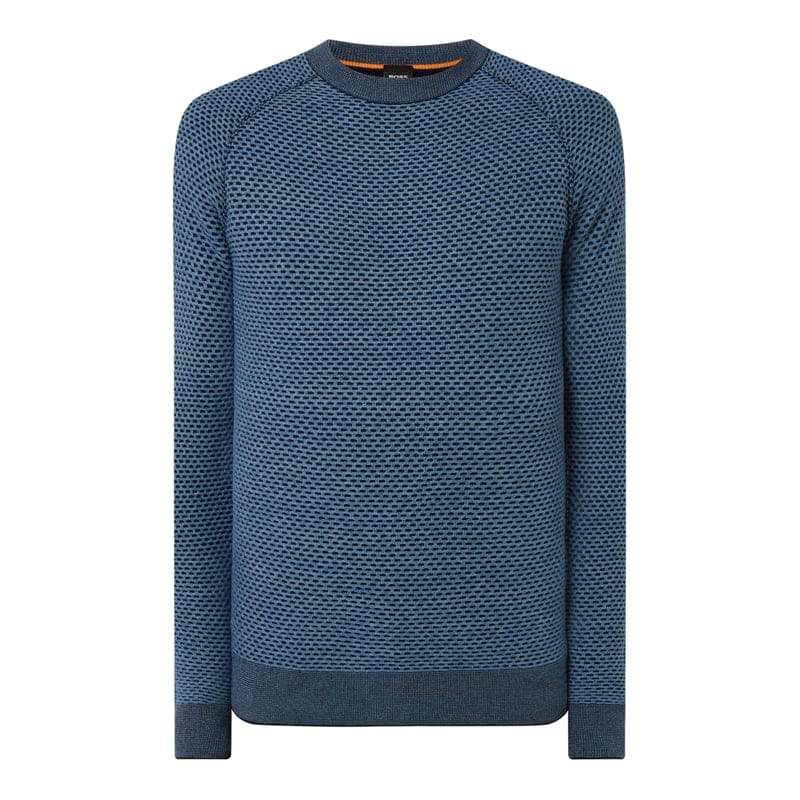 Sweter męski BOSS, Czysta bawełna , Prosty krój , Wzór z fakturą, Okrągły dekolt , Raglanowe rękawy , Prążkowane wykończenia , Logo, Długość tyłu w rozmiarze M: 72 cm