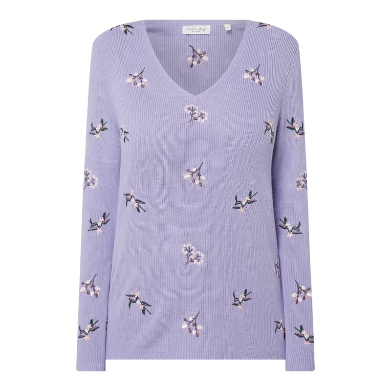 Sweter damski Christian Berg Women, Mieszanka bawełny , Taliowany krój , Prążkowana faktura , Dekolt w serek , Hafty kwiatowe , Długość tyłu w rozmiarze 36: 60 cm, Długość rękawa w rozmiarze 36: 64 cm