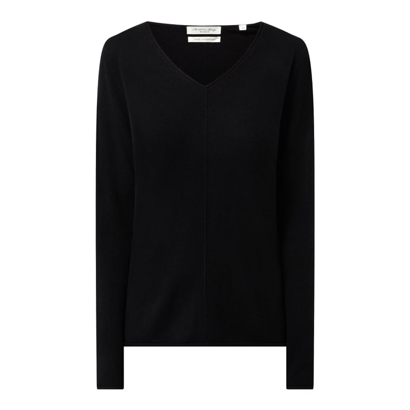 Sweter damski Christian Berg Women, Czysty kaszmir , Taliowany krój , Drobny splot , Dekolt w serek , Krótkie rozporki po bokach, Zrolowane brzegi , Długość tyłu w rozmiarze 36: 59 cm, Długość rękawa w rozmiarze 36: 62 cm