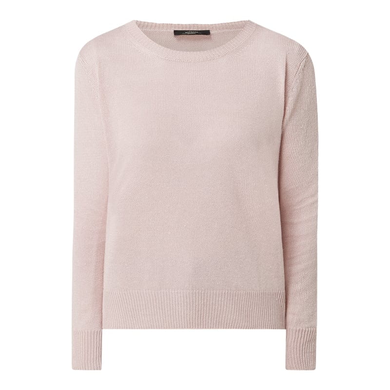 Sweter damski Weekend Max Mara, Czysty len , Prosty krój , Oczka z fakturą , Okrągły dekolt, Prążkowane ściągacze , Długość tyłu w rozmiarze S: 54 cm, Długość rękawa w rozmiarze S: 59 cm