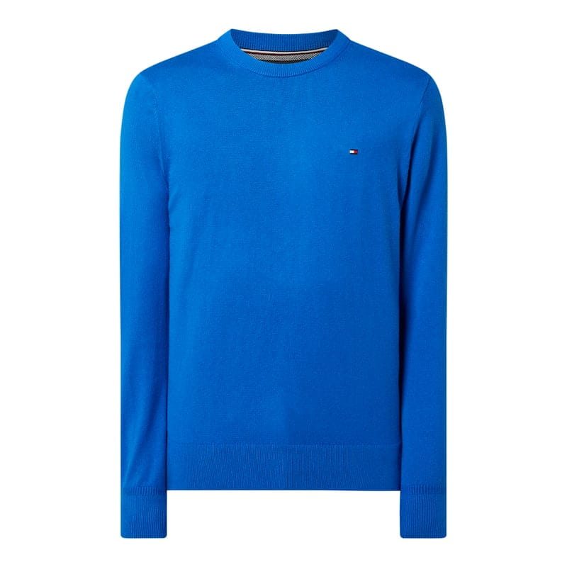 Sweter męski Tommy Hilfiger, Bawełna pima i kaszmir, Prosty krój , Okrągły dekolt , Wyhaftowane logo na wysokości piersi , Prążkowane ściągacze na rękawach i na dole , Długość tyłu w rozmiarze M: 68 cm , Długość rękawa w rozmiarze M: 70,5 cm