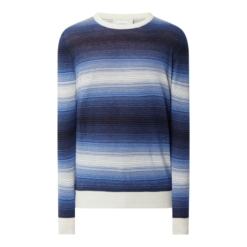 Sweter męski Baldessarini, Mieszanka lnu i bawełny, Prosty krój, Wzór w paski, Okrągły dekolt, Prążkowane wykończenia, Made in Italy , Długość tyłu w rozmiarze 50: 69 cm , Długość rękawa w rozmiarze 50: 69 cm