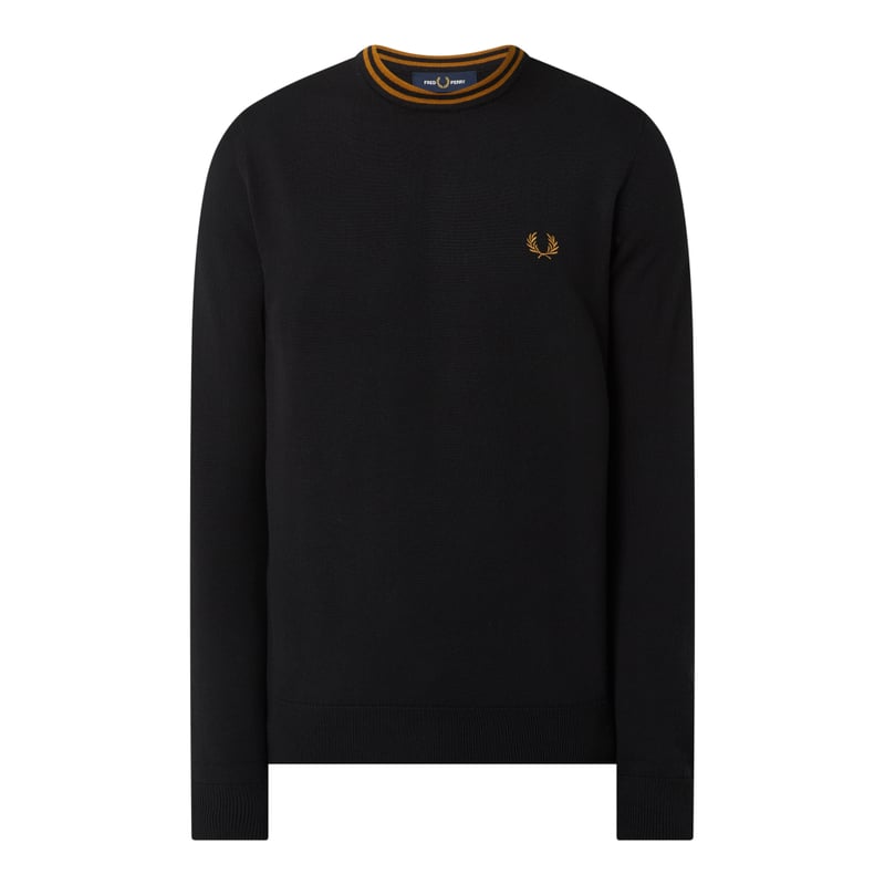 Sweter męski Fred Perry, Mieszanka wełny i bawełny, Prosty krój , Okrągły dekolt w kontrastowym kolorze , Wyhaftowane logo, Długość tyłu w rozmiarze M: 73 cm, Długość rękawa w rozmiarze M: 73 cm
