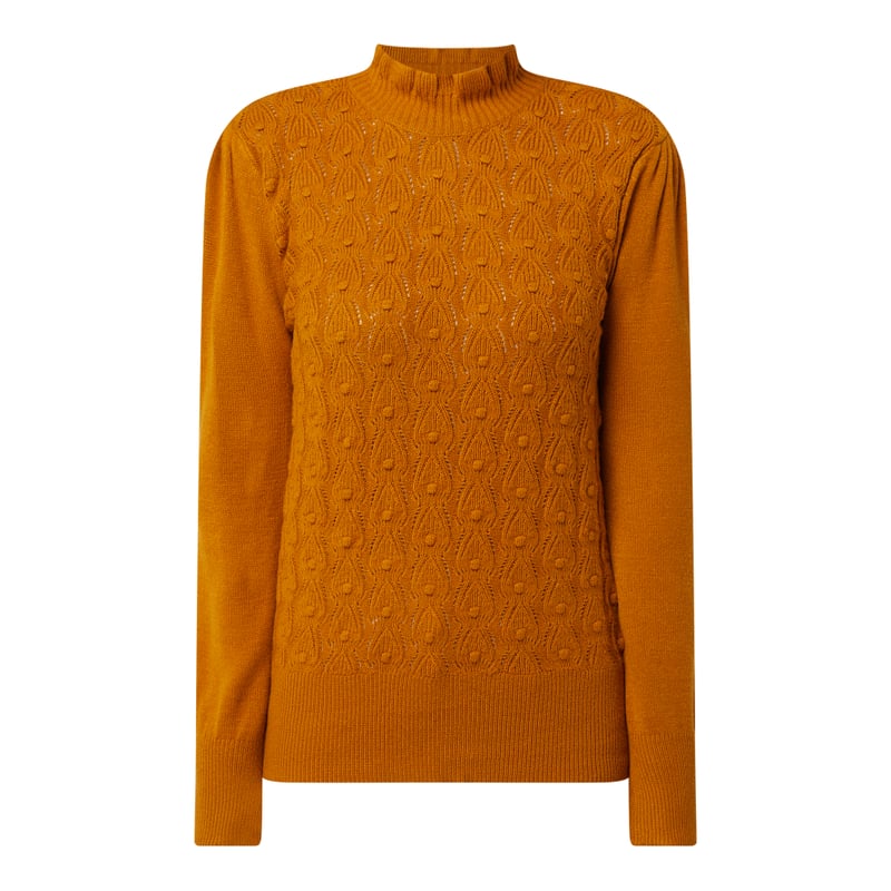 Sweter damski soyaconcept, Mieszanka wiskozy , Wąski krój , Ścieg warkoczowy , Stójka , Plisy na ramionach , Długość tyłu w rozmiarze S: 67 cm, Długość rękawa w rozmiarze S: 66 cm