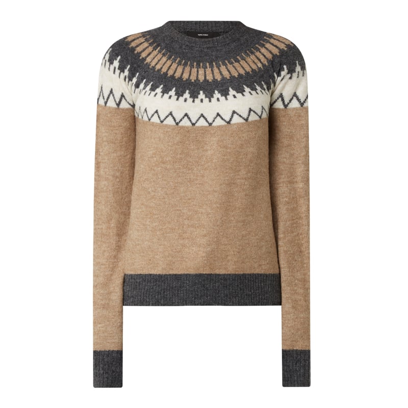 Sweter z norweskim wzorem damski VERO MODA , Mieszanka materiałów z poliestrem z recyklingu, wełną i elastanem, Luźny krój, Norweski wzór , Okrągły dekolt, Raglanowe rękawy , Prążkowane wykończenia , Długość tyłu w rozmiarze S: 58 cm