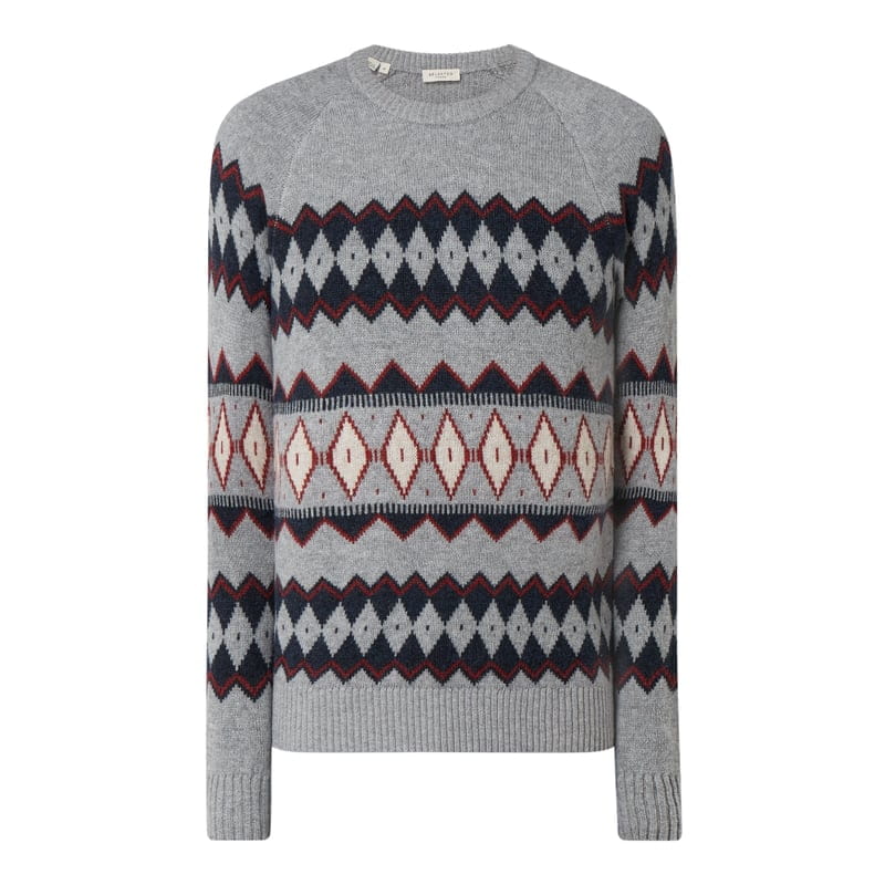 Sweter z norweskim wzorem męski SELECTED HOMME, Mieszanka wełny, Prosty krój , Okrągły dekolt , Raglanowe rękawy , Prążkowane ściągacze na rękawach i na dole , Długość tyłu w rozmiarze M: 67 cm