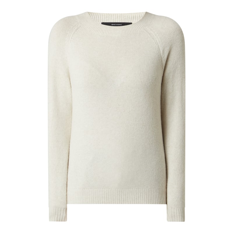 Sweter damski VERO MODA , Mieszanka materiałów z poliestrem z recyklingu , Taliowany krój , Okrągły dekolt , Raglanowe rękawy , Prążkowane ściągacze , Długość tyłu w rozmiarze S: 53 cm