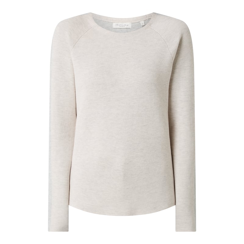 Sweter damski Christian Berg Women , Mieszanka bawełny z dodatkiem modalu , Luźny krój, Okrągły dekolt , Raglanowe rękawy , Paski w kontrastowym kolorze na rękawach , Długość tyłu w rozmiarze 36: 58 cm