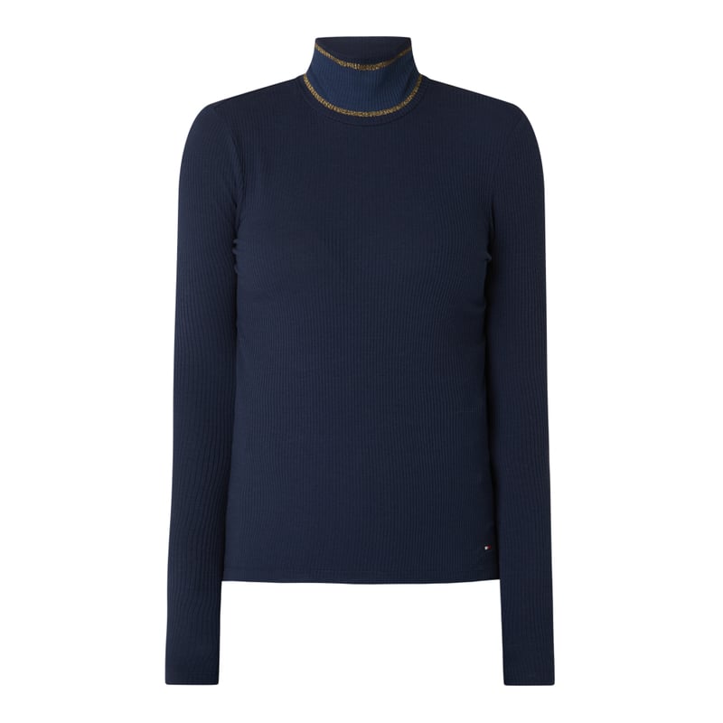 Sweter damski Tommy Hilfiger , Mieszanka modalu z dodatkiem bawełny i streczu , Taliowany krój, Prążkowana faktura , Stójka z paskami z efektownej przędzy , Długość tyłu w rozmiarze S: 60 cm, Długość rękawa w rozmiarze S: 66 cm
