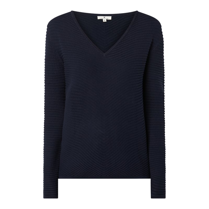 Sweter damski TOM TAILOR, Czysta bawełna , Prosty krój , Dekolt w serek , Prążkowana faktura , Długość tyłu w rozmiarze S: 60 cm, Długość rękawa w rozmiarze S: 63 cm