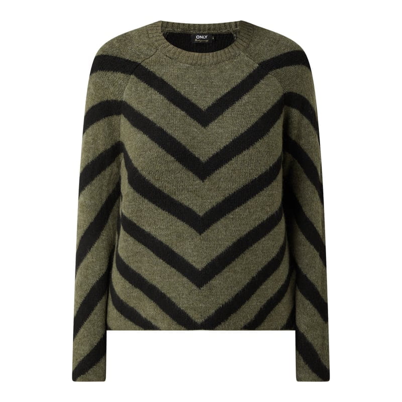 Sweter damski ONLY , Miękki materiał , Luźny krój , Wzór w paski , Okrągły dekolt , Raglanowe rękawy , Prążkowane ściągacze , Długość tyłu w rozmiarze S: 52 cm