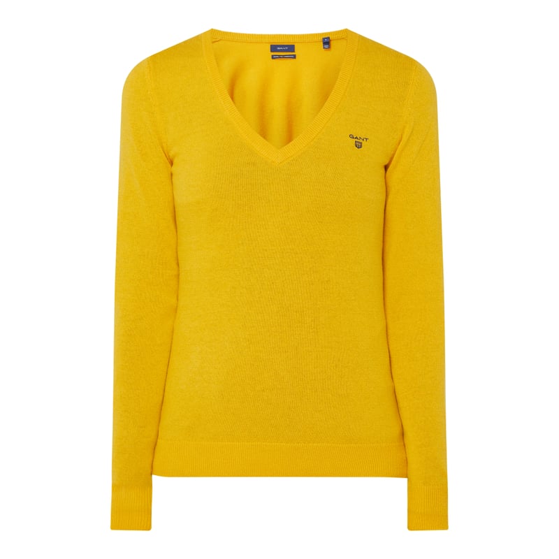 Sweter damski GANT, Wełna jagnięca, Wąski krój , Drobne oczka , Dekolt w serek , Wyhaftowane logo , Długość tyłu w rozmiarze S: 60,5 cm, Długość rękawa w rozmiarze S: 62 cm