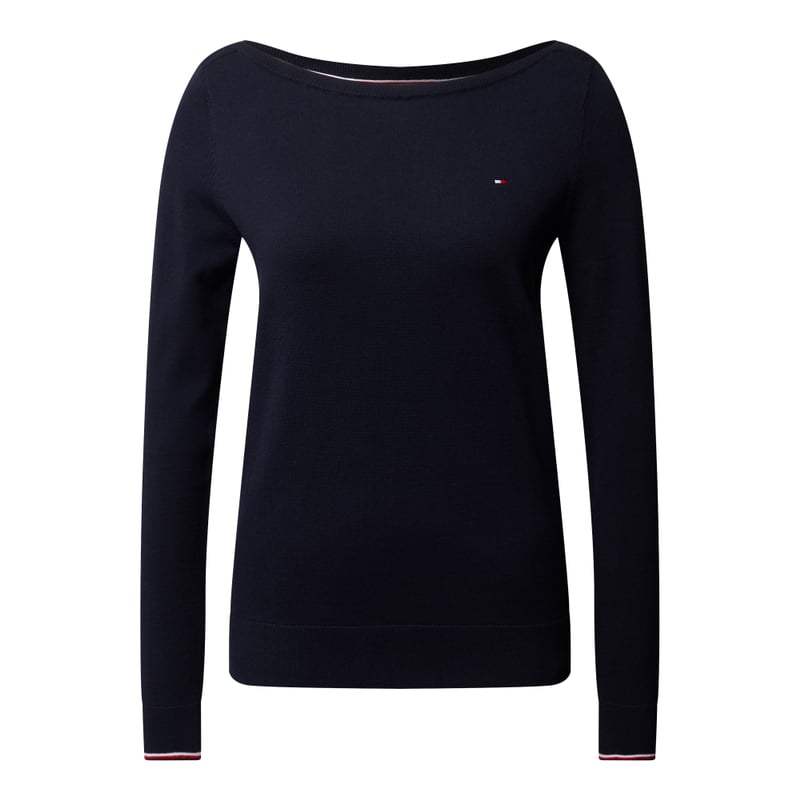 Sweter damski Tommy Hilfiger, Mieszanka bawełny , Taliowany krój , Okrągły dekolt , Wykończenie rękawów w paski , Wyhaftowane logo na piersi , Długość tyłu w rozmiarze S: 60 cm, Długość rękawa w rozmiarze S: 60 cm