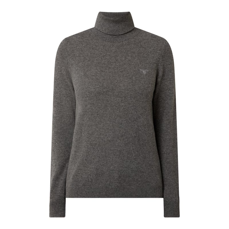 Sweter damski GANT, Czysta wełna , Wąski krój , Prążkowana faktura , Wywijany kołnierz , Wyhaftowane logo , Długość tyłu w rozmiarze S: 60 cm , Długość rękawa w rozmiarze S: 65 cm