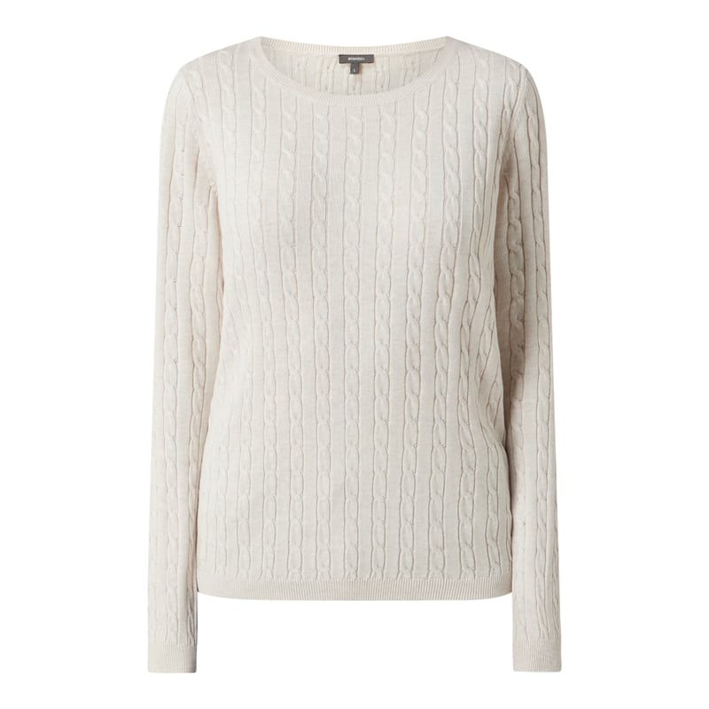 Sweter damski MONTEGO, Mieszanka bawełny , Prosty krój , Ścieg warkoczowy , Okrągły dekolt , Prążkowane ściągacze , Długość tyłu w rozmiarze S: 61 cm, Długość rękawa w rozmiarze S: 63 cm