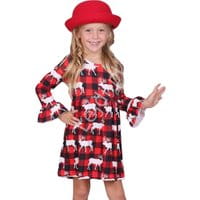 Świąteczna sukienka dla dziewczynki z reniferami w czerwoną kratę