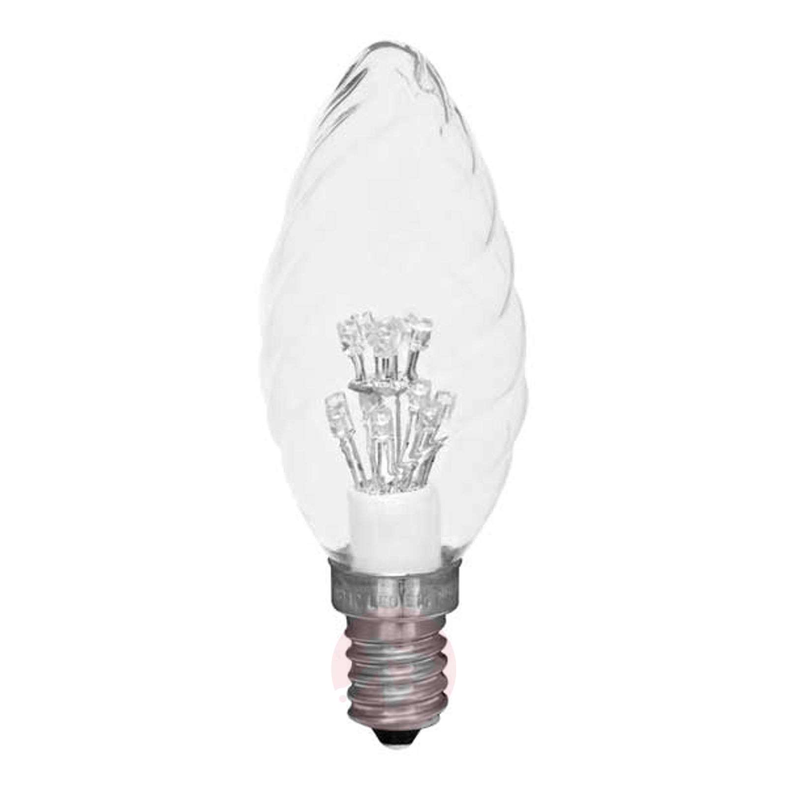 Żarówka świecowa LED E14 0,9W kręcona do dekoracyjnego oświetlenia, w dwóch kolorach Te lampy LED to nowoczesna, energooszczędna opcja o wystarczającej jasności do wszelkiego rodzaju dekoracyjnego oświetlenia. Dostępne są w różnych temperaturach barw, aby zaspokoić wszelkie gusty. Temperatura barwy ciepła biel 2100 K przypomina standardową żarówkę. Długa żywotność Dzięki żywotności wynoszącej ok. 15 000 godzin, lampy LED można stosować kilkakrotnie dłużej niż standardowe żarówki. Dłuższa żywotność oznacza mniejszą ilość odpadów elektronicznych i oddziaływań na środowisko, dzięki uniknięciu szkodliwych substancji jak np. rtęć. Niższe zużycie energii Te lampy LED mogą zastąpić wiele różnych typów standardowych żarówek i być zastosowane, w przeciwieństwie do nich, już od 0,9 W. Można w ten sposób zaoszczędzić 90% energii. - nie zawiera rtęci - natychmiastowa 100% moc światła bez możliwości ściemniania Klasa efektywności energetycznej: A++