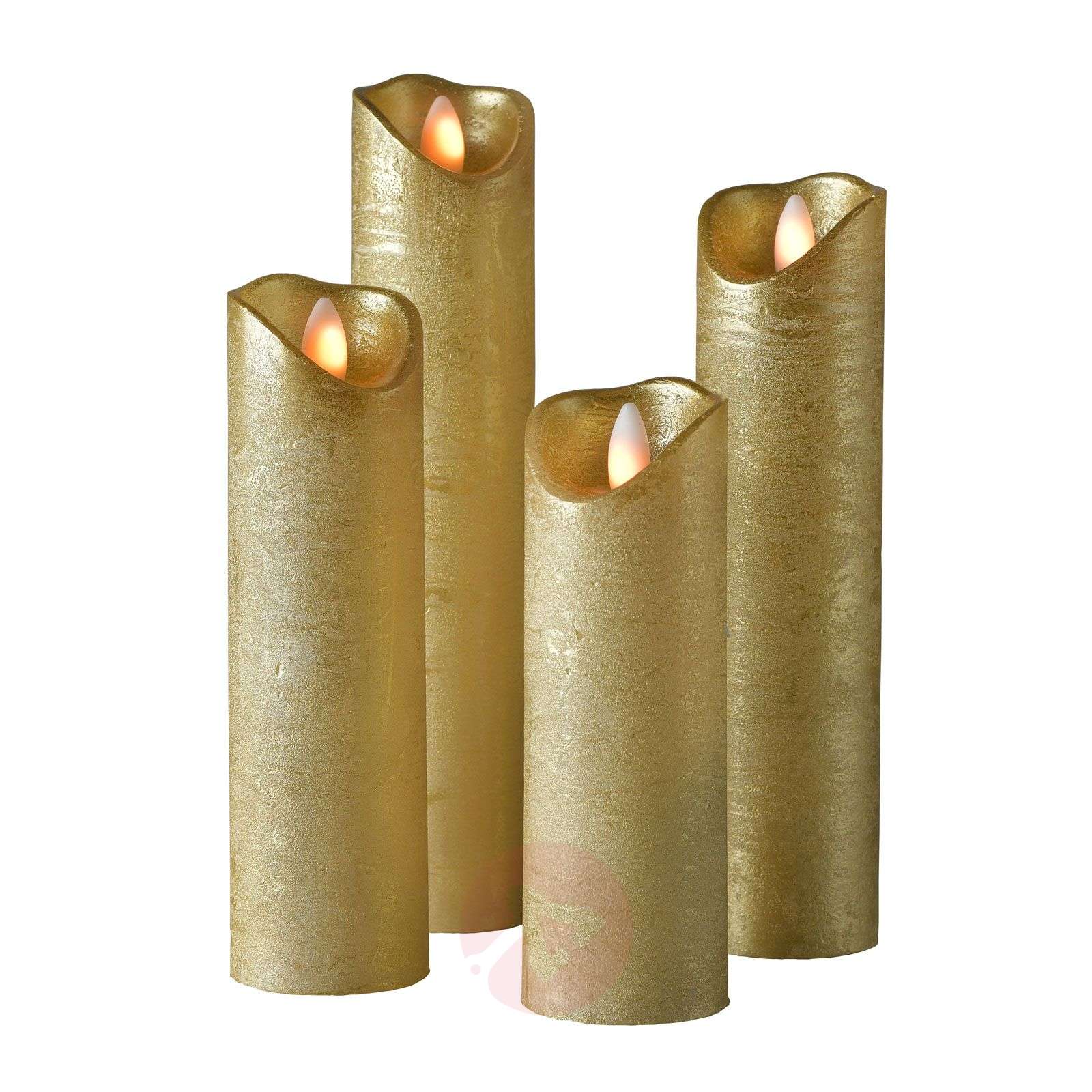 Wąska świeca słupkowa LED Shine do adwentowej dekoracji w zestawie 4 szt Świeca LED Shine jest dostępna w zestawie czterech świec o różnych wysokościach i jest idealnym wyborem dla wyposażenia wieńca adwentowego, świątecznej aranżacji kwiatowej lub adwentowego talerza. W przeciwieństwie do prawdziwych świec, nie stanowi ryzyka pożaru. Shine wyposażona jest w technologię Multi-LED dla uzyskania autentycznego efektu świetlnego. - wysokość świecy: 15 cm/17,5 cm/20 cm/22,5 cm zestaw 4-cz. - z pilotem - z 6-godzinowym programatorem czasowym - zasilanie bateryjne: 8 x AA (baterie nie wchodzą w skład zestawu, można je zamówić w dziale „Akcesoria dodatkowe”) - czas pracy: 250 godzin