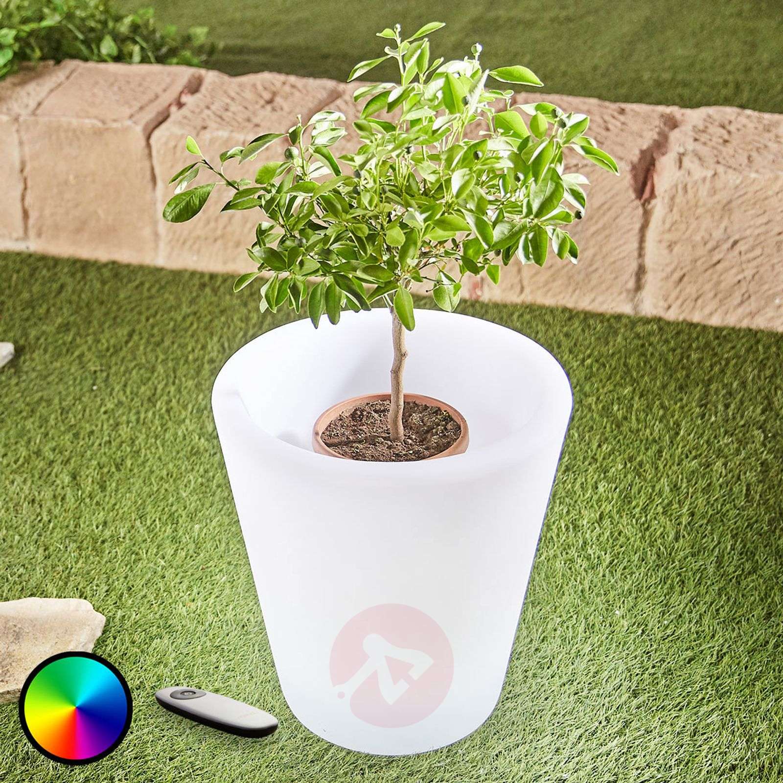 Świecąca doniczka Leyra z LED RGB i pilotem Leyra to piękny element oświetleniowy do ogrodów, na tarasy i balkony. Doniczka wykonana jest z białego plastiku i może emitować światło o barwie uniwersalnej bieli oraz kolorowe światło RGB. Do sterowania funkcjami zmiany barwy światła służy pilot znajdujący się w zestawie, pozwalający stworzyć scenariusz świetlny według upodobania użytkownika oraz zanurzyć podwórko w ładnym świetle, zapewniającym ciekawe efekty. - 8-12 godzin pracy akumulatora Klasa efektywności energetycznej: A+