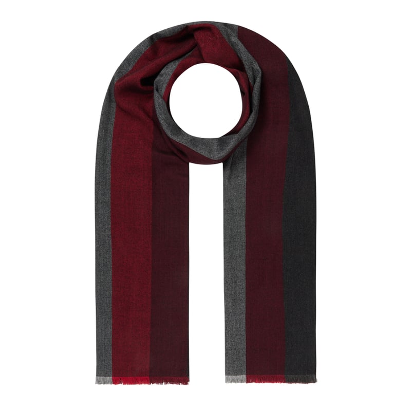 Szal męski MONTEGO, Czysta wiskoza, Wzór w jodełkę i blokowe pasy, Postrzępione brzegi, 185 x 31 cm