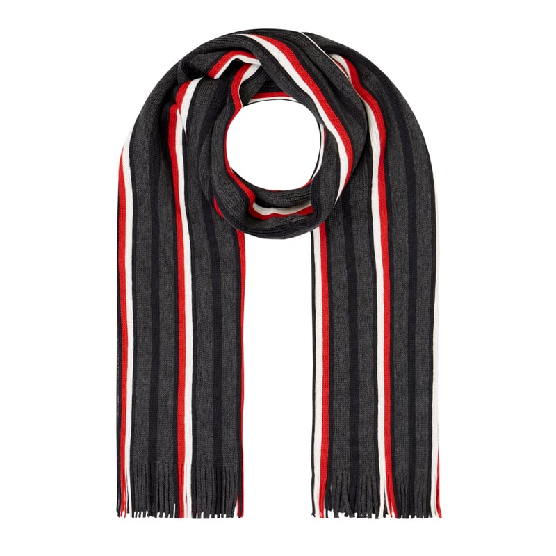 Szal męski Tommy Hilfiger , Mieszanka materiałów z dodatkiem wełny , Prążkowana faktura , Wzór w paski , Wykończenie frędzlami, 180 x 33 cm