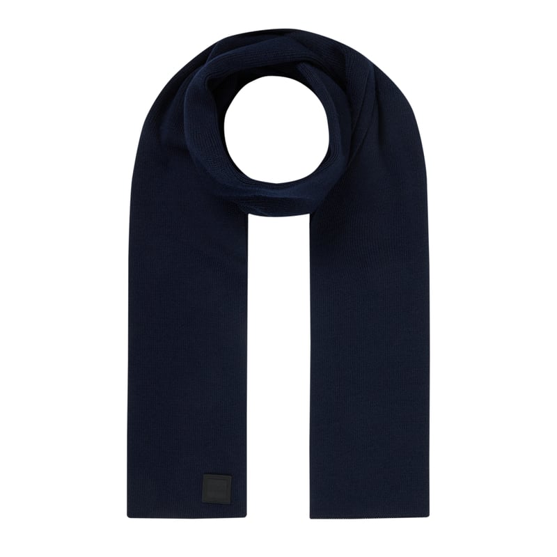 Szal męski BOSS, Mieszanka materiałów z dodatkiem wełny, Prążkowana struktura, Logo, 160 x 26 cm