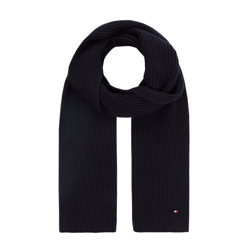 Szal męski Tommy Hilfiger, Bawełna pima i kaszmir, Prążkowana faktura, Wyhaftowane logo , 180 x 25 cm