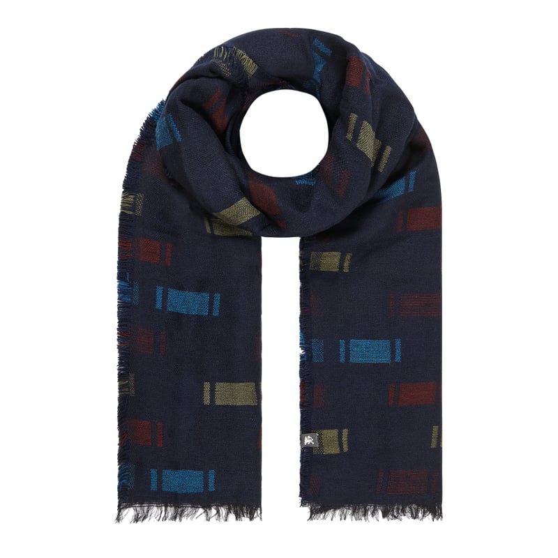 Szal męski LERROS, Mieszanka materiałów z dodatkiem bawełny, Tkany wzór, Delikatne frędzelki na brzegach, Logo, 194 x 54,5 cm