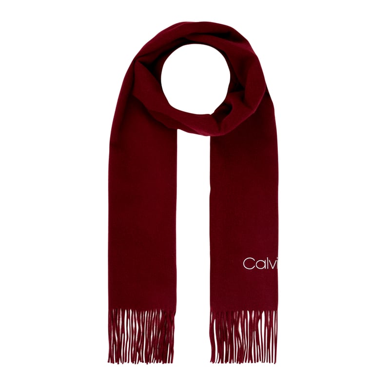 Szal damski Calvin Klein, Czysta wełna, Wyhaftowane logo , Frędzle, 180 x 34 cm