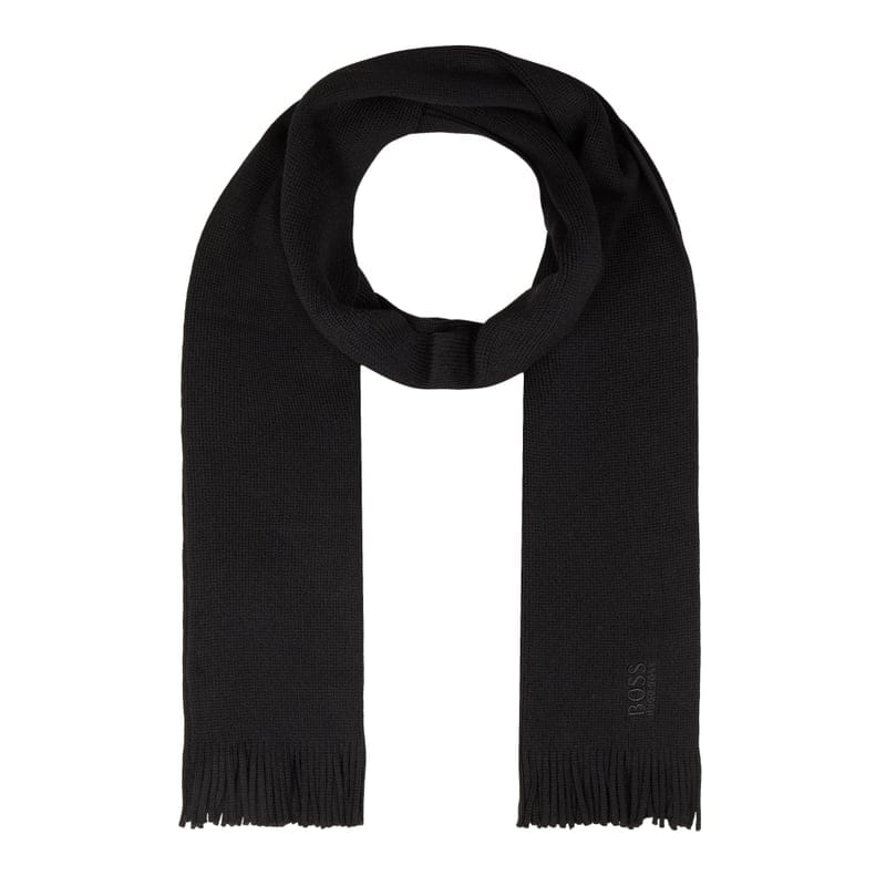 Szal męski BOSS, Czysta żywa wełna, Frędzle, Logo, 170 x 25 cm