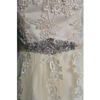 Pasek w kolorze ivory z kryształkową ozdobą. Doskonały do sukien wieczorowych jak i ślubnych.