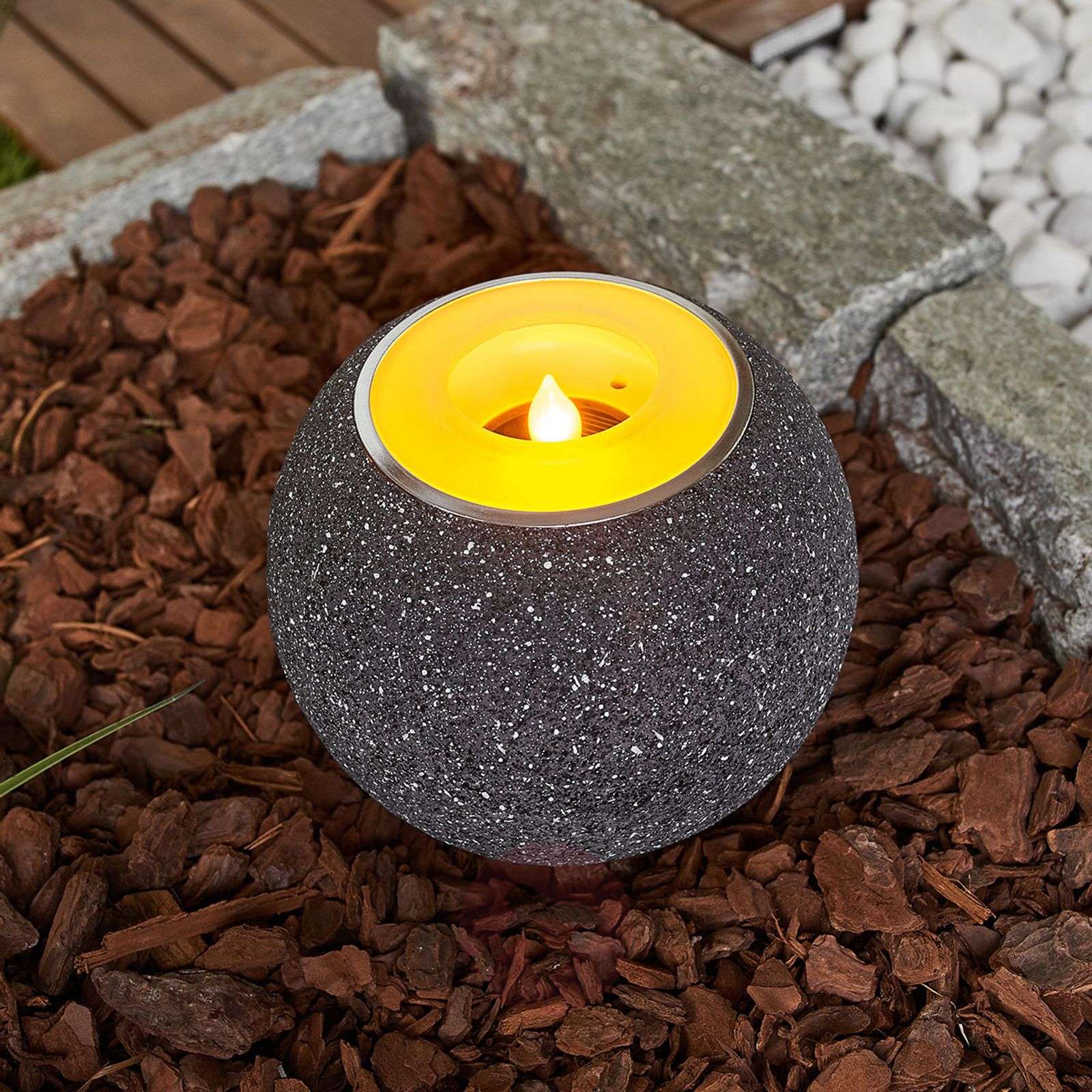 Kulista solarna świeczka LED Dijan z kamiennoszarym wykończeniem Dijan może stanowić element różnych aranżacji na stole lub parapecie. Zasilana energią słoneczną świeczka LED potrzebuje tam jednak miejsca, które jest dobrze nasłonecznione. Wieczorem odwdzięcza się nastrojowym, przyjemnym światłem, ponieważ LED zintegrowana w świeczce emituje bursztynowe, migocące światło, podobnie jak klasyczna świeczka. Obudowa jest wykonana z żywicy polimerowej i ma atrakcyjną, kamiennoszarą powierzchnię. Klasa efektywności energetycznej: A+