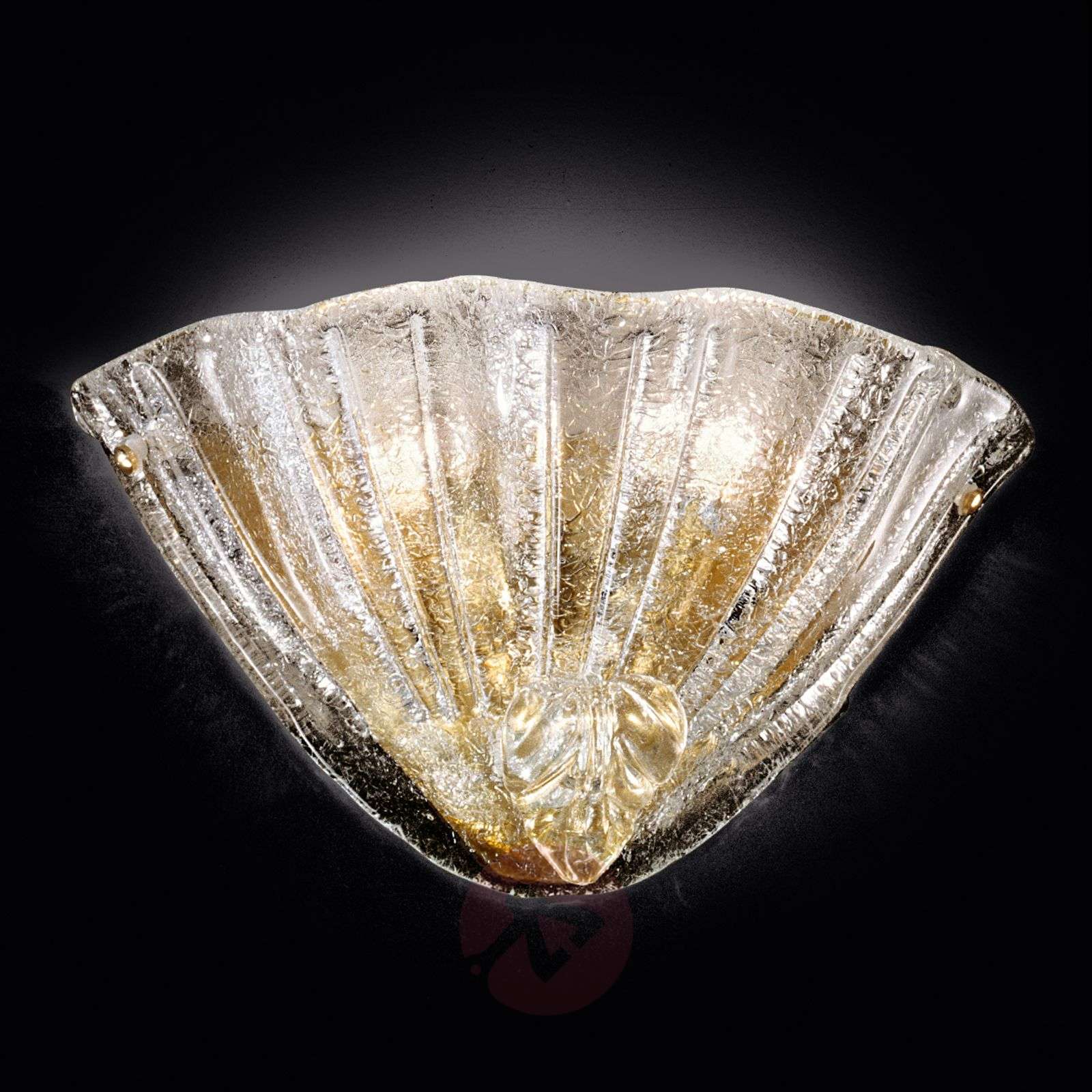 Świetna lampa ścienna Alba z wysokiej jakości szkła z Murano Jako piękne oświetlenie dodatkowe w pomieszczeniu, lampa ścienna Alba wykonana kompletnie ze szkła z Murano. Wyjątkowy błysk emitowanemu światłu nada 24-karatowe złocenie, naniesione miejscowo na przezroczyste szkło. Pięknym detalem będzie umieszczona płytka również wykonana ze szkła. Klasa efektywności energetycznej: A++
