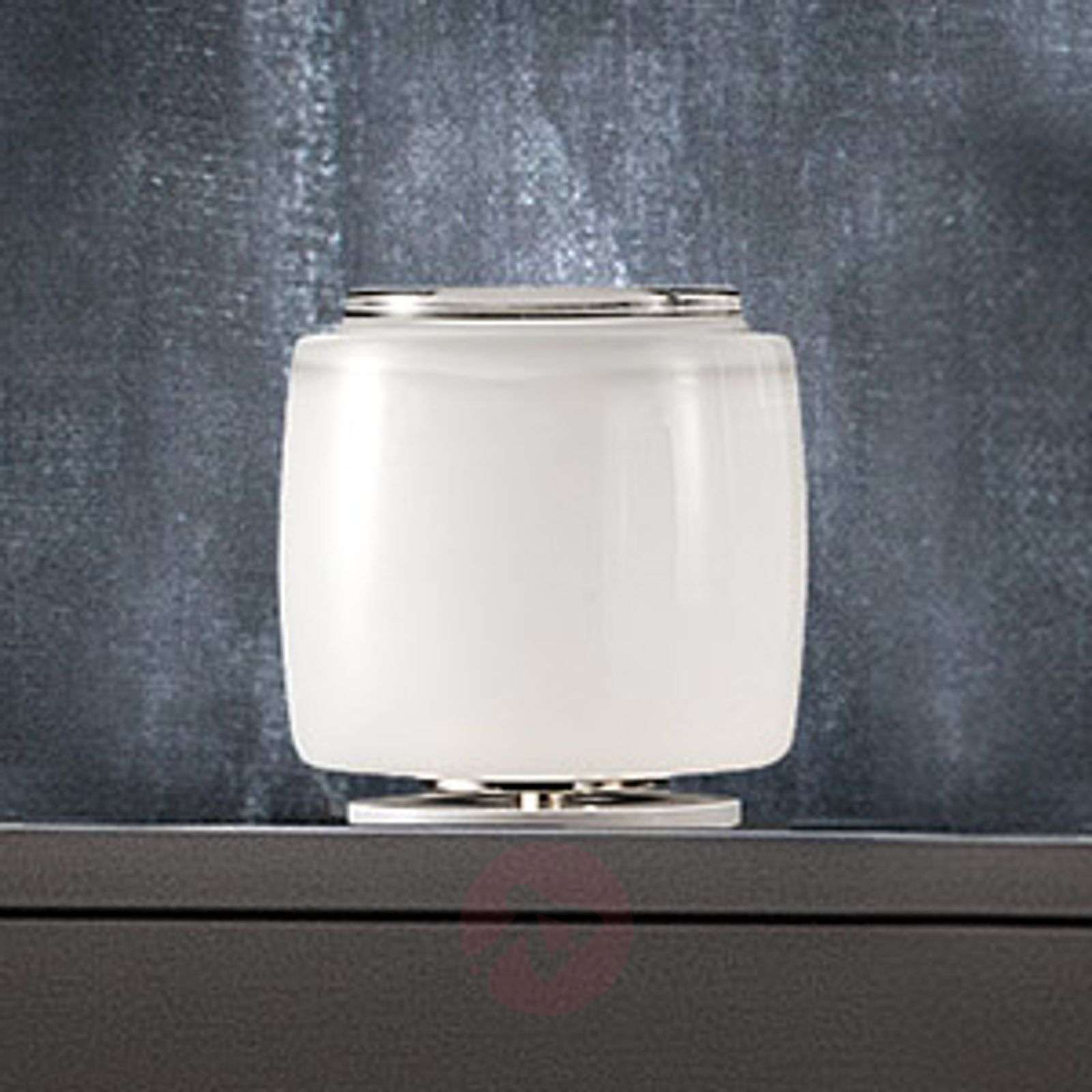 Dyskretna lampa stołowa Bot z prostym szklanym korpusem Ta mała lampa stołowa charakteryzuje się powściągliwym wzornictwem. Mimo to jest wciąż przekonująca, ponieważ dzięki swojemu prostemu wyglądowi można ją łatwo zintegrować z różnymi stylami wyposażenia wnętrz. Szklany korpus lampy stołowej Bot wykonany jest z białego, dmuchanego szkła. Do tego dochodzi metalowa podstawa i metalowa obręcz dekoracyjna. Producent tych lamp jest znany z tradycyjnego rzemiosła. Swoje modele produkuje we Włoszech od 1952 roku, używając tylko wysokiej jakości szkła Murano. Szkło jest dmuchane i zawsze jest wykonywane w kilku warstwach. Szczególne kształty lamp są wynikiem współpracy z różnymi projektantami, którzy chcą nadać lampom bardzo szczególny, niepowtarzalny charakter. - z dmuchanym, wielowarstwowym szkłem Klasa efektywności energetycznej: A++