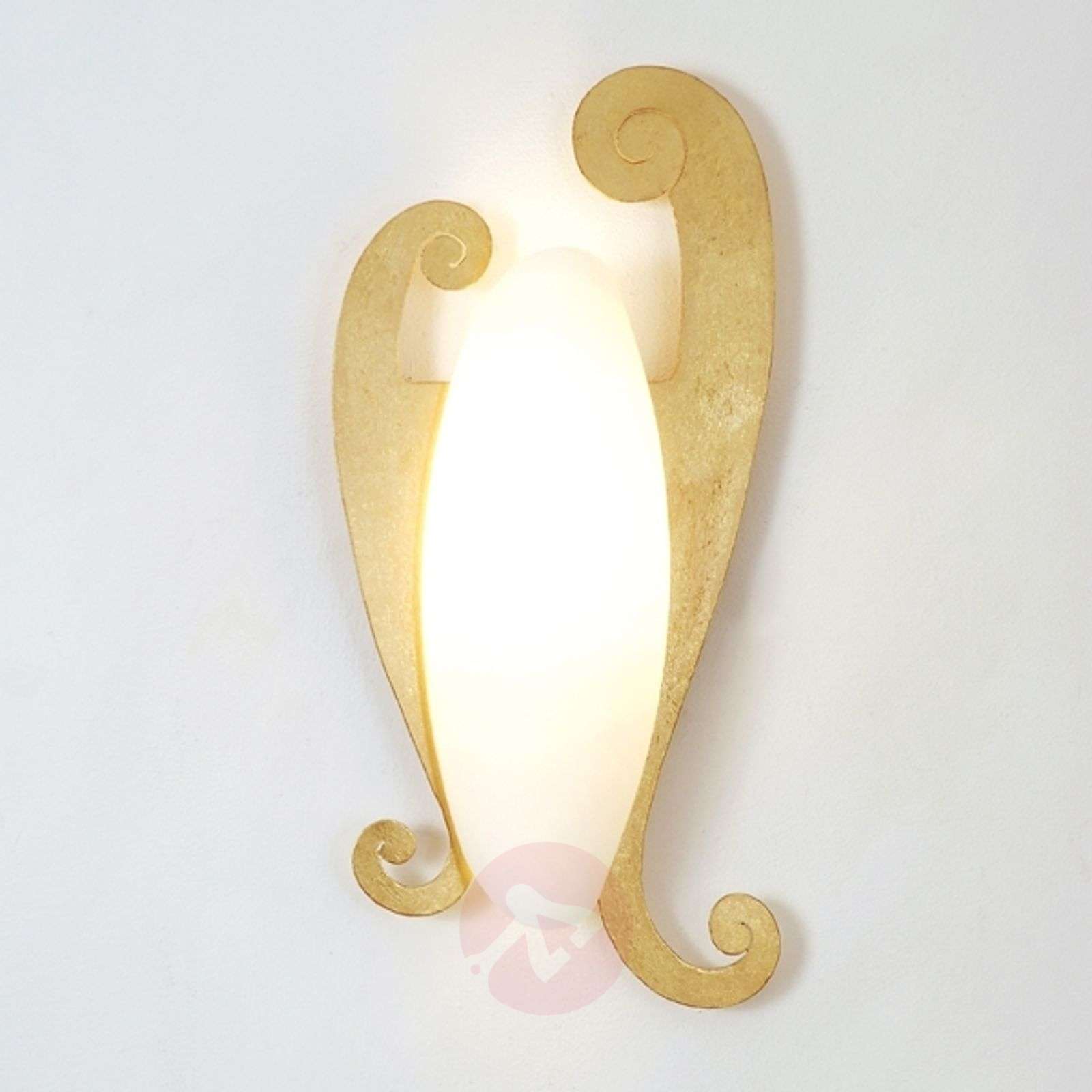 Lampa ścienna ONDULATA z białym opalizującym kloszem otoczonym bardzo efektownie złotą metalową ramą Dzięki gustownemu połączeniu białego opalizującego szkła ze złotymi, dekoracyjnymi ornamentami z metalu lampa ONDULATA tworzy szczególne akcenty w pomieszczeniu. Ten biały szklany klosz emituje przytulne światło, które zapewnia przyjemną atmosferę. Ta lampa dekoracyjne akcenty o pięknym kształcie, które zwracają uwagę w każdym pomieszczeniu. Klasa efektywności energetycznej: A++